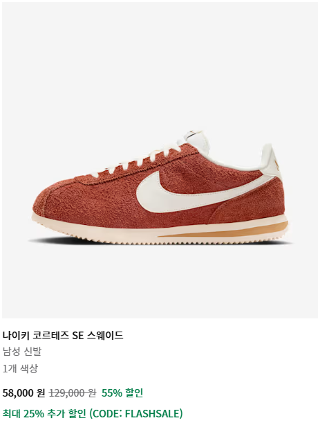 나이키할인이 시작되었습니다. 나이키 플래시세일은 1년에 2회정도 진행하는 최대의 할인행사인데 올해는 오늘(5월 21일)부터 5월 25일(일요일)까지 5일간 진행되고, 최대 55%할인된 상품을 구매할 수 있고, 구매 금액에 따라 추가로 25%까지 가능합니다. 이게 끝이 아니고 결제방법에 따라 또 추가할인까지 가능하니 나이키할인할 때 필요하신 품목 무조건 구매하시고 추가할인도 받으세요.