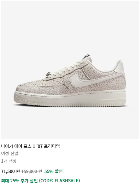 - 할인내용 : 20~55%이상까지 기본할인이 된 금액으로 장바구니에 담게 되고, 10만원이상 구매시 추가 15%할인, 20만원이상 구매시 추가 25%까지 추가할인이 가능합니다.(프로모션 코드에 'FLASHSALE'을 입력해야함)