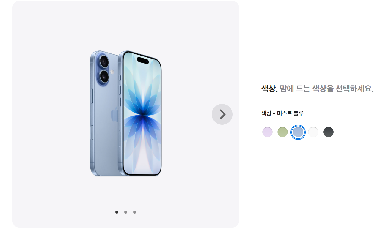 - 컬러는 아이폰16과 동일하게 총 5가지 색상으로 출시하였으나 색감이 조금 변경되었습니다. 색상은 라벤더/ 세이지/ 미스트블루/ 화이트/ 블랙으로 출시하였고 아이폰16과 비교하면 채도가 조금 낮아졌다고 해야할것 같습니다. 톤 다운된 색상이어서 차분한 느낌이 납니다.