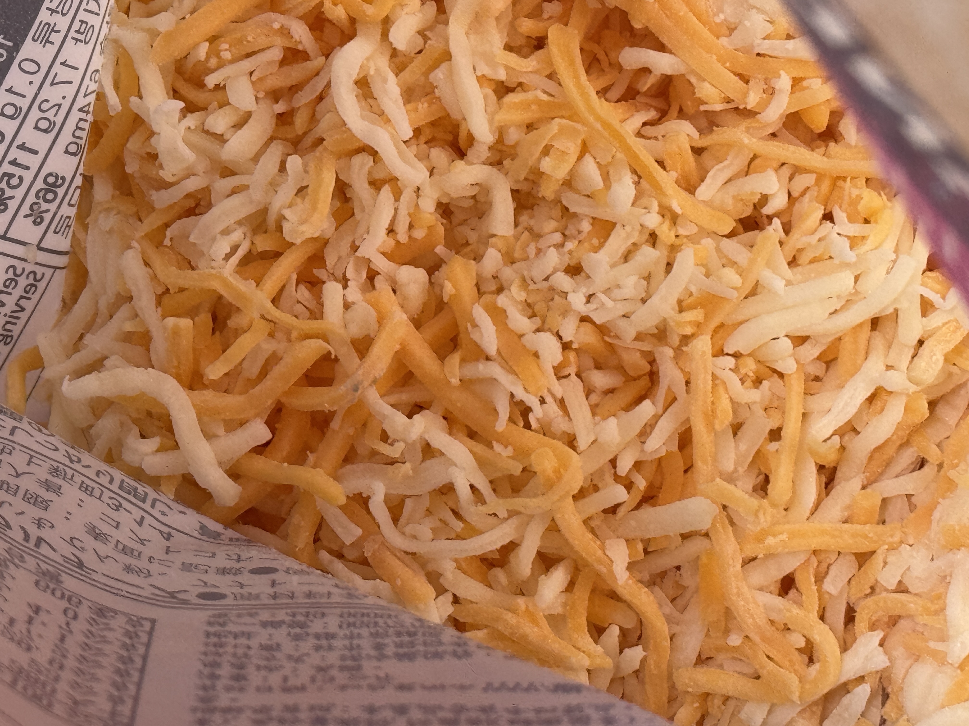 코스트코에서 냉동으로 판매하는 대형 슈레드치즈는 2종류입니다. 하나는 모짜렐라만 조각낸 치즈인 [커클랜드 시그니쳐 쉬레드 모짜렐라]가 있고, 다른 하나는 위의 사진과 같이 2종류의 치즈를 섞어서 조각내놓은 멕시칸스타일 블랜드 치즈입니다. 쉬레드모짜렐라 치즈는 같은 중량이 26,590원으로 비교적 저렴하지만 다양한 요리에 사용하기에는 멕시칸치즈가 더 좋아서 저는 항상 이걸로 구매해놓습니다.