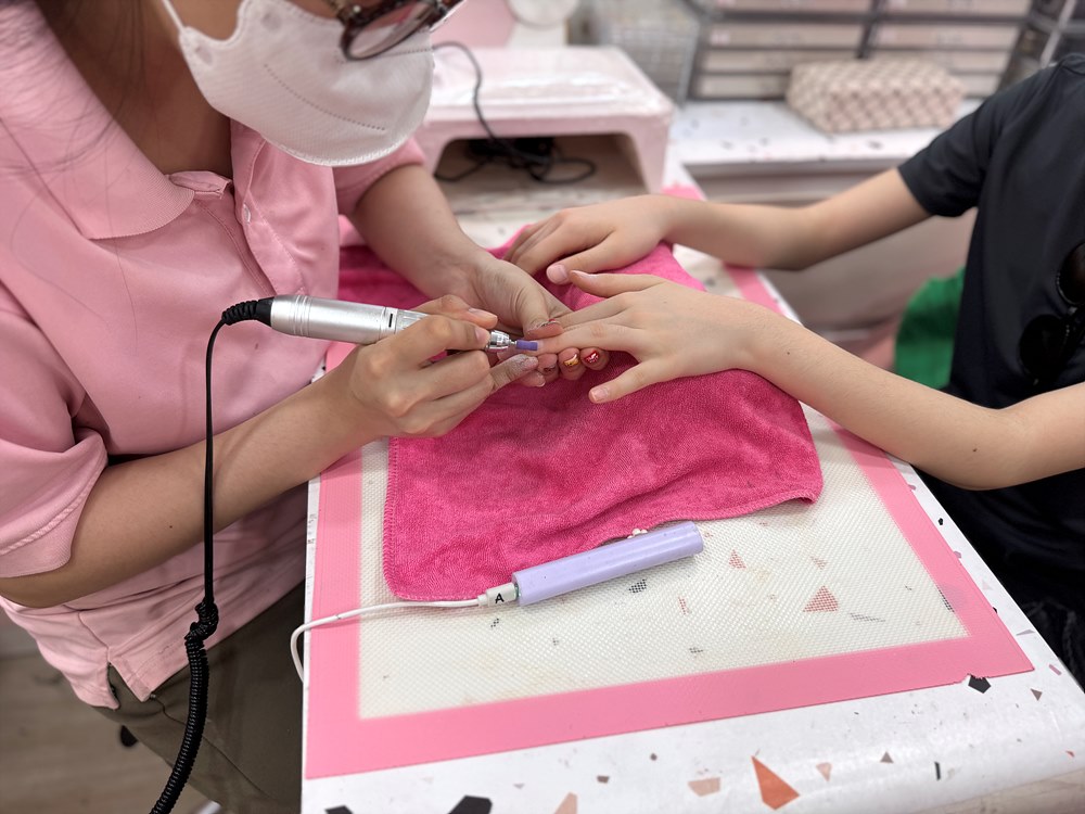 완성된 길이연장+젤네일입니다. 초등학생들은 이렇게 연장은 안하는거 아닌가요? ㅋㅋ 여행 마지막날 제거하기로 약속하고 해줬습니다. 한국에서 이렇게 하고 다니는건 못보겠네요.