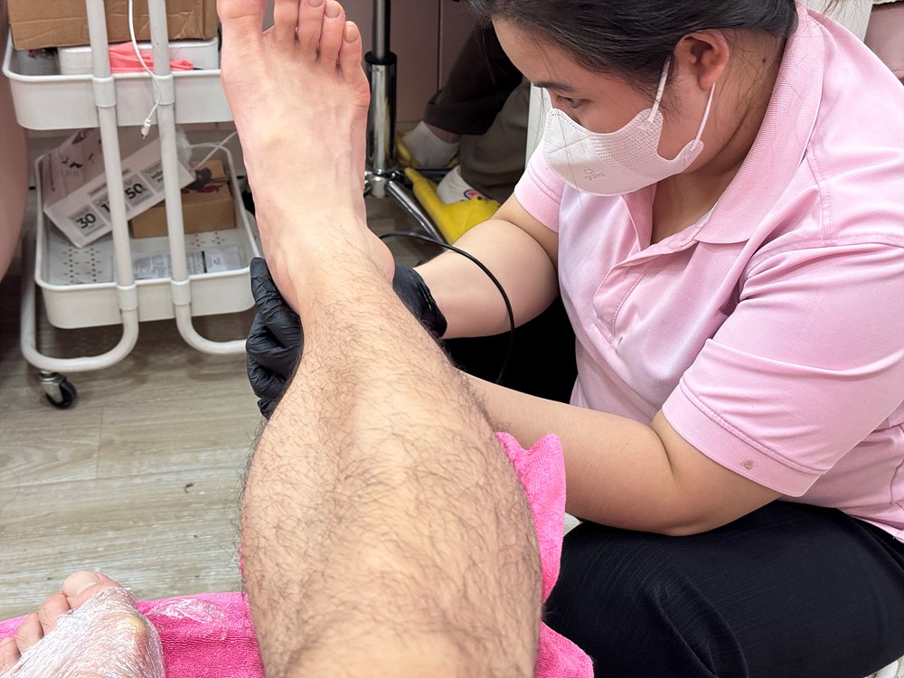 손톱 케어를 마치고 발톱관리와 발각질제거 등을 합니다. 따뜻한 물에 불려서 깎아내기도 하고 엄청 시원합니다. 나중에 나트랑에서 이발소 가서 손발케어를 받기도 했는데 네일샵에서 받은 케어와는 질이 다릅니다. 남성분들 베트남 가시면 네일샵 핸드&풋 콤보케어 꼭 받으세요. 강추입니다.