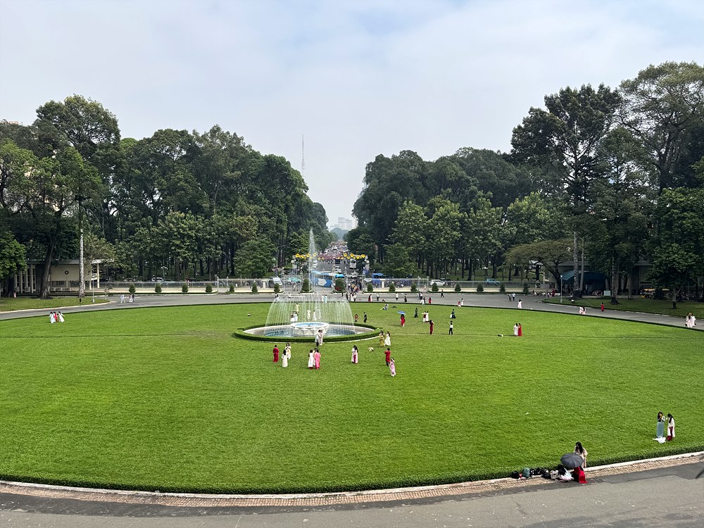 베트남사람들은 아오자이를 입고 통일궁 앞 잔디에서 사진을 찍으면 즐기는 모습입니다. 우리나라도 경복궁이나 덕수궁 갈 때 한복대여해서 사진촬영하듯이 베트남 사람들도 비슷한 모습입니다. 더운데 엄청 열정적으로 촬영을 하시는 분들이 많습니다.